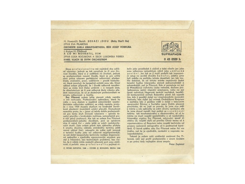 Čs. vocal schlager - SP singel do zbierky zberateľov čs.pop/rock music.