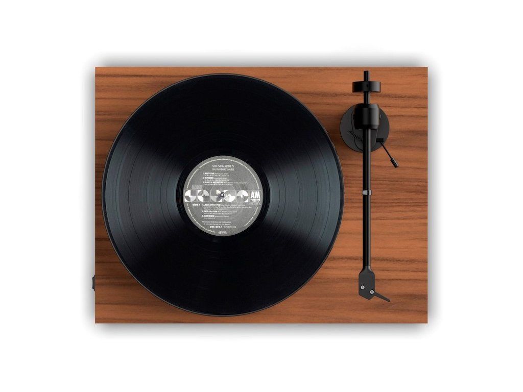 Gramofón E1 je osadený lisovaným tanierom z plastiku a je poháňaný remienkom a DC motorom s tlmením. V tejto cenovej kategórii poteší i možnost elektronického prepínania rýchlosti. Stačí jednoducho prepnúť trojpolohový prepínač na bočnej strane do požadovanej polohy pre rychlosť 33 alebo 45 rpm. O účinné odtienenie od nežiaducich vibrací sa postarajú tri tlmené podstavy a samozrejmosťou je i odnímatelný protiprachový kryt.
